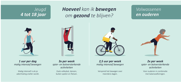 De beweegrichtlijnen zijn in 2017 opgesteld door de Gezondheidsraad op verzoek van het ministerie van Volksgezondheid, Welzijn en Sport (VWS). De beweegrichtlijnen geven advies over de hoeveelheid en type lichaamsbeweging die nodig is voor een goede gezondheid. Op basis van wetenschappelijk onderzoek zijn er beweegrichtlijnen opgesteld voor de jeugd van 4 tot 18 jaar, volwassenen en senioren.