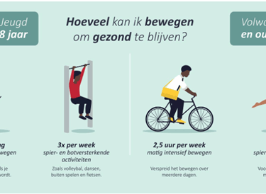 Om te helpen anderen of jezelf meer te laten bewegen, heeft het Kenniscentrum Sport & Bewegen een aantal praktische handvatten om jou op weg te helpen hierbij. Deze kun je vinden in de Beweegrichtlijnen toolkit - Kenniscentrum Sport en Bewegen.